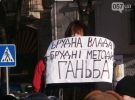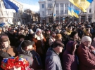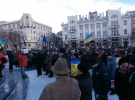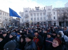 Не встиг закінчитися мітинг проросійських і комуністичних організацій на площі Свободи, як біля пам'ятника Шевченку почали збиратися прихильники європейського шляху для України. Буквально за півгодини вони повністю заполонили майданчик. Практично у всіх були зав'язані стрічки, багато принесли з собою національні і європейські прапори, а також саморобні плакати.