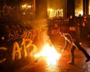 Учасники протестів палили фаєри і кидали їх у бік поліцейських. Крім того, розмалювали вхідні двері і стіни Офісу президента, а також порозливали червону фарбу. У двох центральних дверях ОП протестувальники розбили скло і кинули туди петарду.