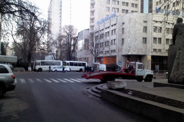 Автоінспектори продовжують блокувати проїзд у центр Києва. Урядовий квартал охороняють бійці внутрішніх військ та "Беркуту".