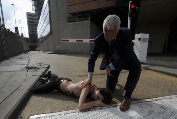 У Брюсселі активістки Femen, оголивши верхню частину тіла, здійснили спробу заблокувати автомобільний кортеж прем'єр-міністра Тунісу Алі Ларайеда.