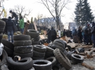 Всередині оборонного муру перебуває кілька сотень чоловіків і жінок. Аби зігрітися, люди палять у бочках багаття. За активістами спостерігають патрульні міліціонери, але не втручаються.