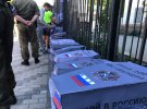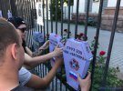 Під відомством зібралося кілька десятків активістів. Люди принесли із собою картонні труни "Груз 200. ЧВК "Вагнера". Їх і фотографії з прізвищами найманців "ЧВК "Вагнера" повісили на ворота посольства.