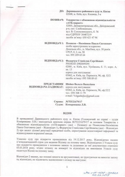 Суд продовжує розглядати позов торгової мережі АТБ проти Станіслава Федорчука за розповсюдження ним наклепницької інформації