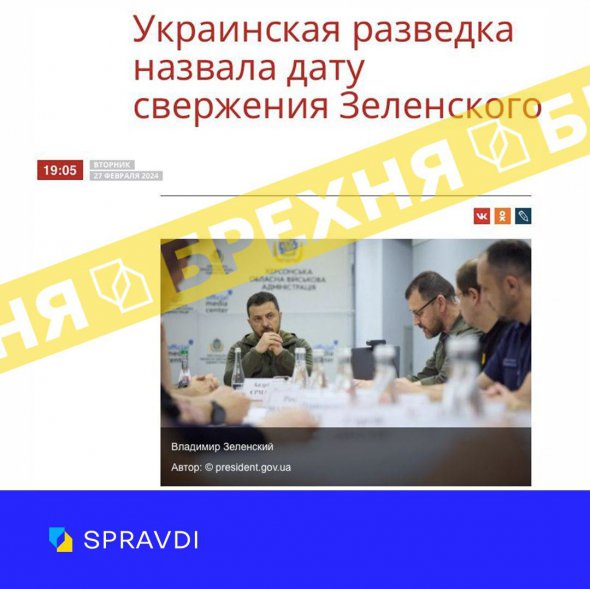 Зокрема, тиражують брехню про те, що Головне управління розвідки нібито оприлюднило точну дату повалення влади президента Володимира Зеленського, повідомляє Центр стратегічних комунікацій та інформаційної безпеки.