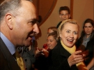 На захід Клінтон одягла на голову позолочений обруч, зроблений у вигляді коси. Таким чином зачіска майбутнього держесекретаря стала схожою на зачіску прем"єрки України Юлії Тимошенко. Фото: REUTERS