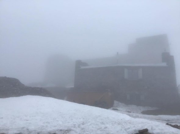 На горі Піп-Іван Чорногорський у Карпатах випав сніг.