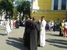 Люди до собору продовжують сходитися. Багато приїзджих переважно з західних та центральний областей. Багато людей у вишиванках, Також на урочистості прийшов лідер фракції "Батьківщина" Арсеній Яценюк та ще кілька нардепів від опозиції.