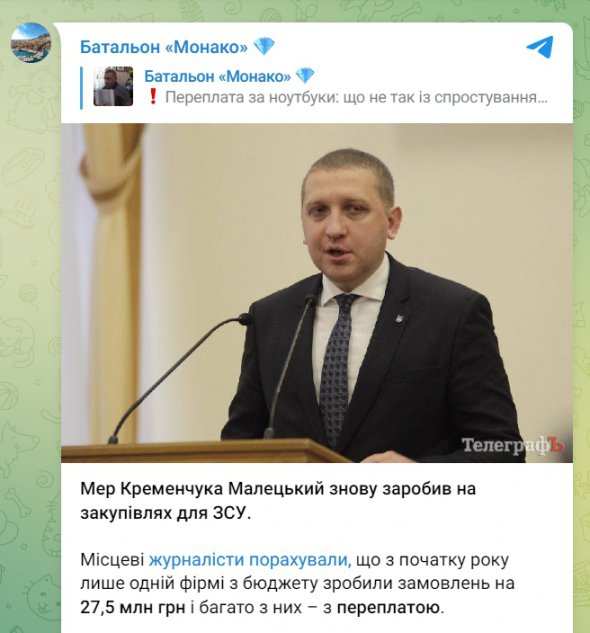 Я українець. Народився в центральній Україні. Прийшов у Telegram із бізнесу. Я не розкриватиму себе з метою безпеки. Зрозумійте, є розслідування, опубліковані в моєму Telegram-каналі, які призвели до низки гучних звільнень та скандалів. І я впевнений, що "Батальон "Монако" продовжуватиме відігравати важливу роль у боротьбі з корупцією та нечесними чиновниками в Україні.