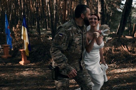 Урочисту подію провели на передовій у Харківській області. Одружив закоханих генерал Збройних сил України.