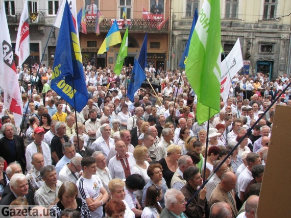 Сьогодні, 10 червня, о 14:00 навпроти входу у Львівську міську раду відбулося народне віче на тему мовного законопроекту Колесніченка-Ківалова.