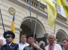 Над натовпом майоріли прапори КУНу, УРП, ВО "Свободи", "Фронту змін" та інших. Крім того, були державні прапори та прапор "Холодного Яру".