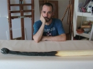 Для того, щоб показати всю габаритність своїх робіт, художник робить фото зі скульптурами, на яких виглядає як ліліпут в будинку Гуллівера.