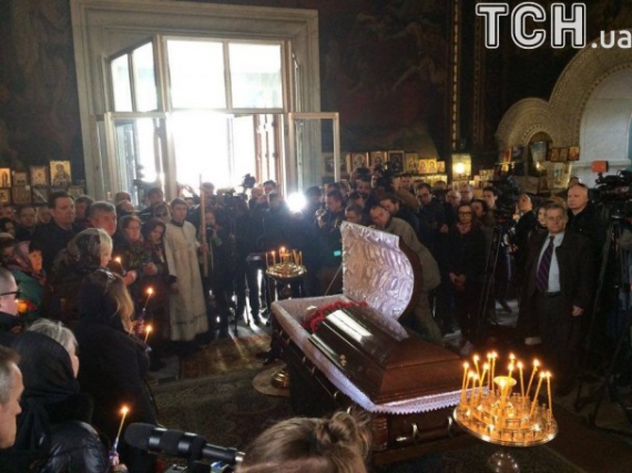 Його труну вже занесли до Володимирського собору, і почалося відспівування, повідомляють кореспонденти ТСН.