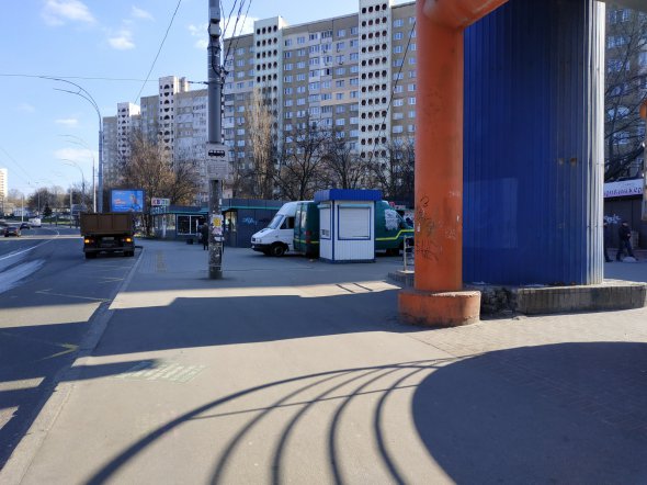 У районі автовокзалу біля Центрального залізничного вокзалу стоять лише автобуси. Людей немає. Біля входу на Південний вокзал 4 четверо поліцейських, пропскають тих, хто йде здавати квитки. Більшість перехожих у масках. "Макдональдз" на вул. Кірпи обмотаний смугастою стрічкою, щоб не заходили люди й не проходили через літній майданчик. Навколо стоїть запах хлорки. Відкрите тільки 1 віконце на "МакДрайві" - для автомобілів. Там припарковано моторолер. На ньому засмаглий чоловік із жовтим рюкзаком Glovo чекає замовлення. Говорить по телефону арабською мовою.