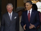 Для початку Барак Обама разом з дружиною Мішель відвідали Букінгемський палац. Подружжя Обами зустрілися з королевою Єлизаветою II та її чоловіком принцом Філіпом. Потім вони провели зустріч з принцом Чарльзом і його дружиною Каміллою Паркер. І нарешті поспілкувалися з подружжям герцогів Кембриджських.