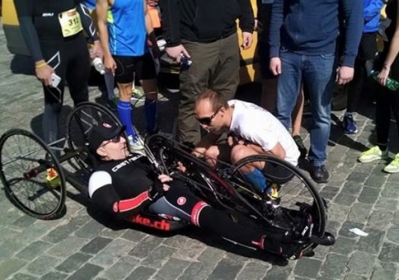 Мер Харкова Геннадій Кернес, який частково паралізований після торішнього замаху на його життя, виїхав на марафон на спеціальному "лежачому" велосипеді. Він візьме участь у забігах на дистанціях "напівмарафон" і "марафон".