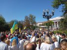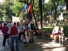У парку багато людей у вишиванках і синьо-блакитних стрічках. Вони усміхнено спілкуються між собою та учасниками мітингу, повідомляє кореспондент Gazeta.ua.