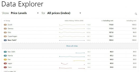 Рейтинг найдорожчих місць світу (без врахування орендної плати за помешкання) виявився наступним: