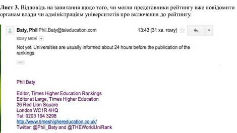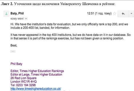 У відповідь на звернення представників Центру дослідження суспільства, головний редактор рейтингу Times Higher Education Філ Бейті повідомив: