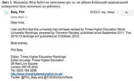 "Я можу підтвердити, що цей університет не був включений до рейтингу Times Higher Education World University Rankings. Рейтинг на 2012-2013 роки буде опублікований 3 жовтня 2012 року ".