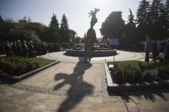 Мер Києва Віталій Кличко відкрив символічну композицію - новий фонтан зі скульптурою Архистратига Михаїла у парку "Володимирська гірка".