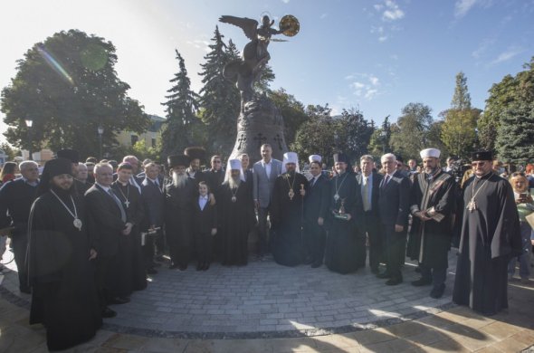 Разом з мером композицію урочисто відкрили сучасні захисники України, начальник караулу 12-ої Державної пожежно-рятувальної частини міста Києва Руслан Черкасов та лікарка-інфекціоністка Олександрівськові лікарні Татьяна Гайнутдінова. На церемонії також були присутні представники всіх релігійних конфесій столиці. Про це повідомляє сайт міського голови.