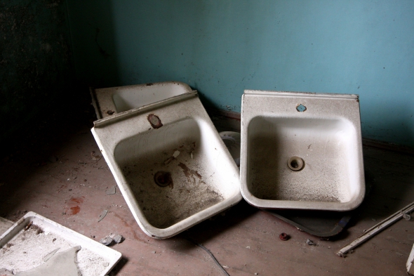 У дворі - зарослі дитячі гойдалки. Біля них лежать три гумові м'ячі. Повсюди видно залишки меблів і матраців. Частково їх із квартир повикидали ще 1986 року, коли місто пройшло перший етап дезінфекції. Речі вивозили й хоронили в могильниках. Свійських тварин стріляли.