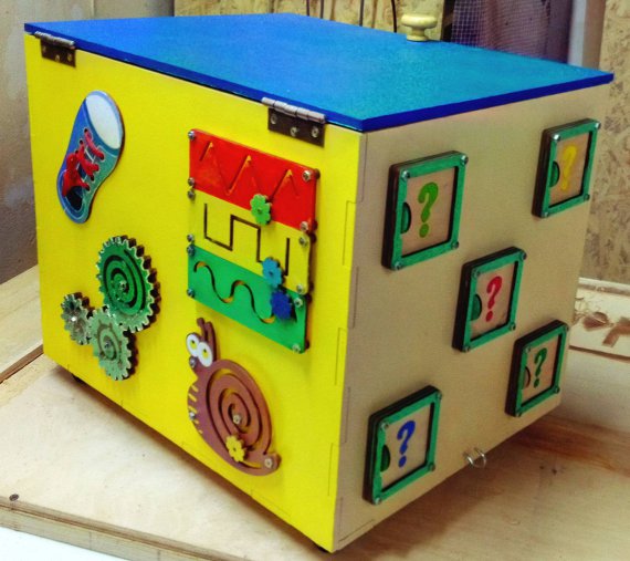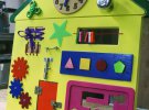 Коштує бізіборд тисячу гривень. Майстер може виготовити його за індивідуальними побажаннями, ціна від цього не зміниться.