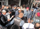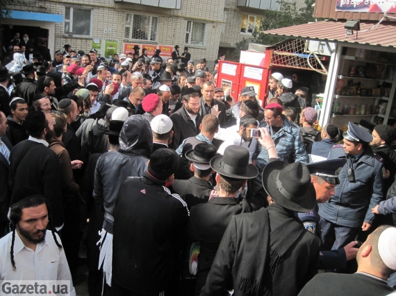 Відвідавши синагогу та помолившись на могилі рабі Нахмана, гості у супроводі охорони зайшли у дев'ятиповерхівку за адресою Пушкіна, 46. Під'їзд, в який вони зайшли заблокувала охорона і нікого не пускала. Через деякий час вони вийшли і в супроводі міліції та власної охорони рушили до наметового містечка.