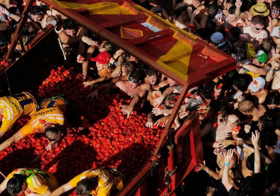 Це свято було запозичено у іспанців і французів. Радісна публіка не шкодуючи ні себе, ні свою одяг цілий день граються у "томатні перестрілки".