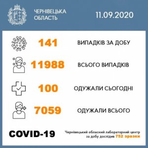 Станом на 11 вересня, загальна чисельність інфікованих коронавірусом людей в Чернівецькій області складає 11988. Близько 1000 пацієнтів – це діти.