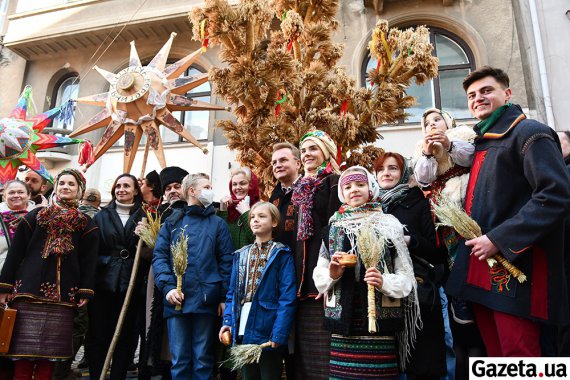 У Львові на пл. Яворського урочисто встановили різдвяного дідуха - символ добробуту та єдності поколінь.