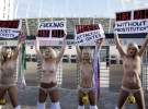 "Ми виступаємо проти проституції в Україні під час проведення футбольного чемпіонату. Під час турніру в Україну приїде безліч вболівальників. І ми виступаємо проти того, щоб українки ставали товаром", - сказала одна з активісток.