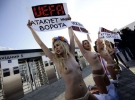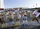 Сьогодні зранку Активістки FEMEN провели акцію біля НСК "Олімпійський". Біля західного входу зібралося безліч українських та іноземних журналістів, які прибули в Україну на церемонію жеребкування "Євро-2012". Про це повідомляє кореспондент Gazeta.ua.