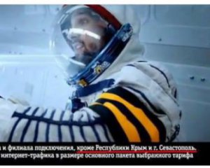 Російський мобільний оператор "Білайн" в своїй рекламі показав, що зв'язок ловить навіть в космосі. При цьому дрібним шрифтом уточнюється, що це не поширюється на Крим і Севастополь.