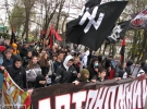 Над головами людей майоріли стяги з кельтським хрестом, Ідеєю нації, червоно-чорний та із символікою "Студентської солідарності".