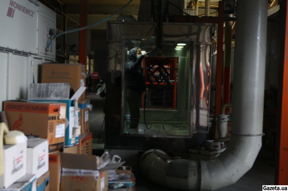 Виробництво займає 4 тис. кв. м. Цехи мають з одного боку глуху стіну, обшиту сірим металом, а з іншого – великі вікна від стелі й майже до підлоги. Попри це в приміщенні доволі темно.