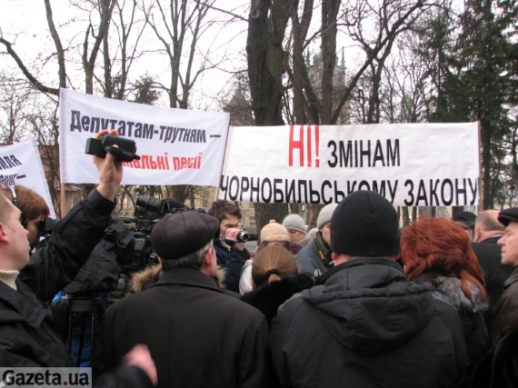 Із собою чорнобильці мали три банери: "Дітям чорнобиля та евакуйованим – захист згідно Чорнобильського Закону", "Депутатам – трутням - мінімальні пенсії", "НІ! Змінам чорнобильського закону".