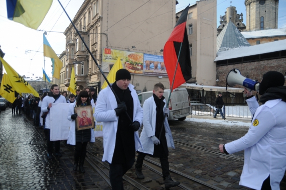 Три сотні студентів національного університету ветеринарної медицини ім. С. З. Гжицького пройшлися маршем протесту проти приєднання їх вузу до аграрного університету. Останній знаходиться в селі Дубляни, недалеко від Львова. Попереду ішли дві дівчини із іконами Божої Матері. За ними несли національні, червоно-чорні та прапори "Автономного опору". В руках студенти несли плакати із закликами не об'єднувати два виші. Вони вигукували: "Ні об'єднанню!", "Слава Україні — смерть ворогам!". На багатьох студентах були білі лікарські халати.