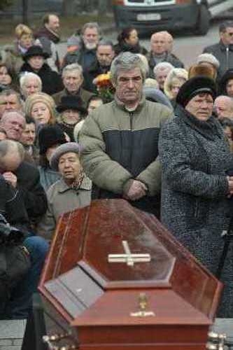 На Личаківському цвинтарі із катафалка домовину винесли курсанти Академії сухопутних військ. На імпровізованій трибуні стоїть мікрофон, колонки, наготові духовий оркестр тої ж Академії сухопутних військ. До мікрофону підходять по черзі отець Михайло Нискогуз, мер Андрій Садовий народний депутат від "Нашої України" Володимир В'язівський, дисидент та проректор Українського католицького університету Мирослав Маринович, письменник Ігор Калинець, ректор Львівського університету Франка Іван Вакарчук, політв'язень Юрій Шухевич.