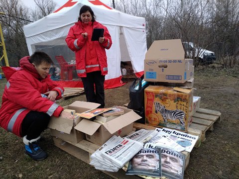 "Перші дні надсилали їжу. Зараз харчових продуктів передають уже мало. З Дніпра надіслали посилку з фабрики іграшок. Багато книг передають, настільні ігри. Сьогодні жителька Санжар принесла 11 пар шкарпеток", - пояснила пані Ольга.