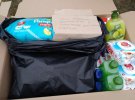 Поки ми говоримо, до намету з коробками та пакетами прийшли дві жінки. Юлія та її подруга Людмила - жительки одного з сіл Новосанжарської ОТГ. Привезли мило рідке та господарче, гель для душу, зубну пасту, шампунь та засоби жіночої гігієни. А ще пакунок підгузків.