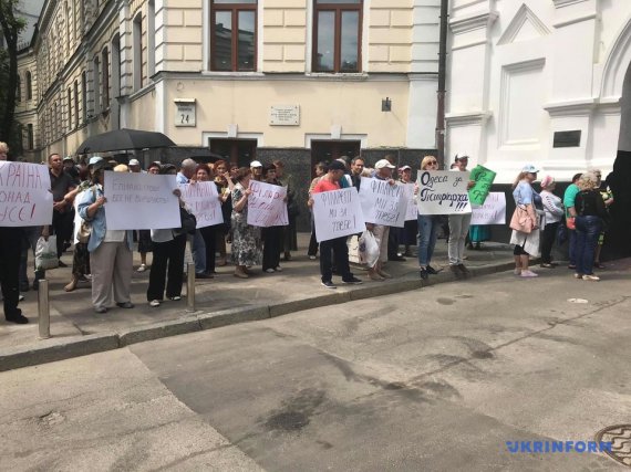 На площі біля Софійського собору зібралося кілька сотень людей, більшість із яких - жінки поважного віку. Натовп скандує гасла: "Геть руки від Філарета", "Філарет - наш патріарх", "Епіфаній, гроші не все вирішують", "Епіфаній, не руйнуй церкву", "Філарет, ми за тебе", пише "Укрінформ".