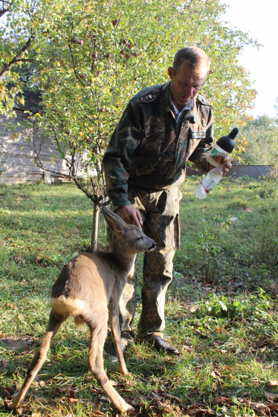 "Навесні грибник приніс косуленятко. Воно було маленьке, не більше за зайчика. Понад тиждень тому у лісі села Матяшівка браконьєри застрелили 10-річну самицю зубра. Вона щойно народила, але нелюдів це не спинило. Вони бачили, що тварина не може втекти від них, бо не могла залишити своє дитя. Так і розстріляли її впритул. Маленьке знайшли на другий день. Якби до вечора не встигли, могло б померти від голоду. Вирішили віддати мені, адже вже знаю, як потрібно доглядати за дикими тваринами", - розповів Сіваченко.