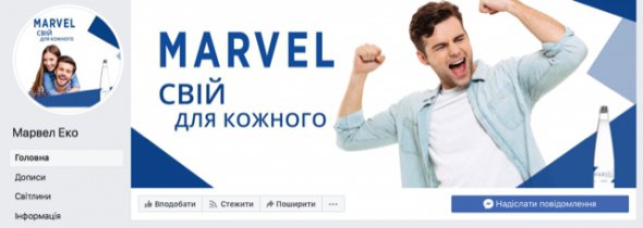 Ні, на рекламних щитах нема зображень пачок сигарет, це було б зовсім брутально. На них на біло-блакитному тлі зображені усміхнені молоді люди. А у правому нижньому кутку на синьому тлі практично непомітна і бліда пляшка води. І напис: Marvel "Свій для кожного".