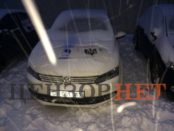 Синьою і жовтою фарбою невідомі намалювали тризуби на автівках із російськими дипломатичними номерами, передає "Цензор.нет".