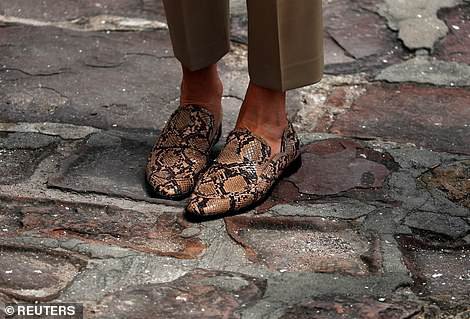 Перша леді США Меланія Трамп здивувала мережу дешевизною свого взуття. Її лофери від Zara зі зміїним принтом коштують 50 доларів (близько 1,5 тисячі грн).