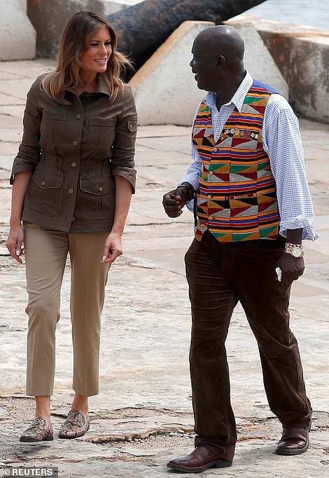 Їх жінка вигуляла під час візиту до африканської країни Гани в рамках свого першого самостійного туру. Вона зустрілася з вождем народу фанті Осабаримбою Квезі Аттою ІІ та відвідала замок Кейп-Кост XVII століття, пише Daily Mail.