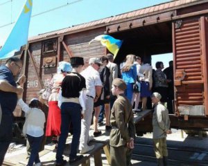 У реконструкції взяли участь люди в формі бійців НКВС. Вони заганяли людей у вагон-"теплушку" на кшталт тих, в яких вивозили татар.