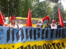 - Кілька людей із червоними ковпаками розгортають великий жовто-синій банер із написом "Ми - майбутнє, яке ви саджаєте". Та першими рушають в напрямку РУМВС. Решта активістів — за ними.